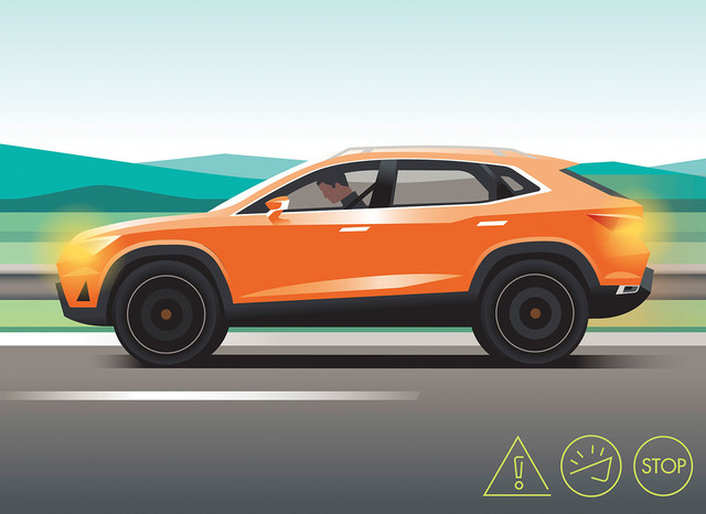 In caso di assenza di attività da parte del conducente, Nuova Leon prende il controllo, attiva le luci di avvertimento, mantiene il veicolo in corsia e aziona i freni fino a fermarsi del tutto.